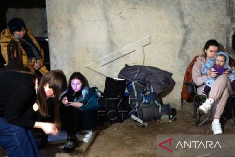 Sejumlah warga berlindung di ruang bawah tanah di apartemen mereka saat terjadi serangan Rusia di kota Karkhiv, Ukraina, Selasa (1/3/2022). Warga Karkhiv memanfaatkan ruangan basement apartemen dan stasiun bawah tanah sebagai tempat berlindung dari serangan misil Rusia. ANTARA FOTO/HO/Volodumyr Yuriyovych Yurchenko/pras/aww.