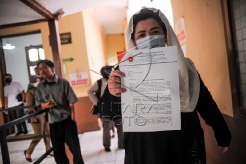Korban terduga kasus mafia tanah Oey Huei Beng menunjukan surat terbuka untuk Presiden Joko Widodo sebelum menjalani sidang perdana kasus dugaan mafia tanah di Pengadilan Negeri Bandung, Jawa Barat, Selasa (16/8/2022). Dalam sidang perdana tersebut, korban kasus dugaan mafia tanah tersebut menyampaikan surat terbuka kepada presiden Joko Widodo terkait dugaan kasus mafia tanah yang terjadi di Bandung, Jawa Barat dengan total kerugian mencapai Rp300 miliar yang telah terjadi sejak 2014. ANTARA FOTO/Raisan Al Farisi/hp.