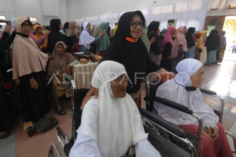 Sejumlah calon jemaah haji mengikuti bimbingan materi manasik haji di Klaten, Jawa Tengah, Selasa (9/5/2023). Kementerian Agama memperpanjang masa pelunasan biaya perjalanan ibadah Haji 1444 H hingga tanggal 12 Mei 2023 karena masih terdapat sejumlah calon jemaah haji yang belum melakukan pelunasan. ANTARA FOTO/Aloysius Jarot Nugroho/YU