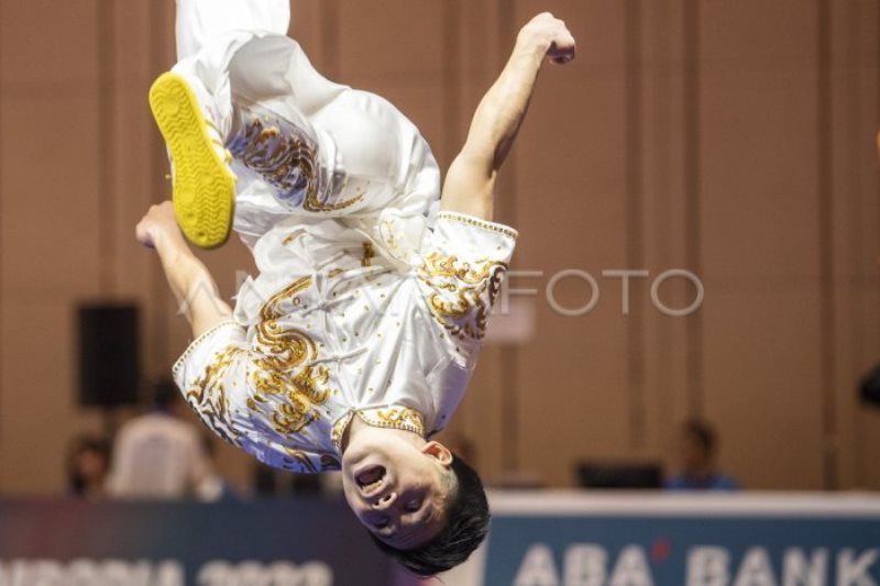 Atlet Taolu Indonesia Edgar Xavier Marvelo beraksi dalam final Wushu nomor Changquan putra saat SEA Games 2023 di Chroy Changvar International Convention & Exhibition Center, Phnom Penh, Kamboja, Jumat (12/5/2023). Edgar Xavier meraih medali emas pada nomor tersebut dengan skor 9,713. ANTARA FOTO/M Agung Rajasa/foc.
