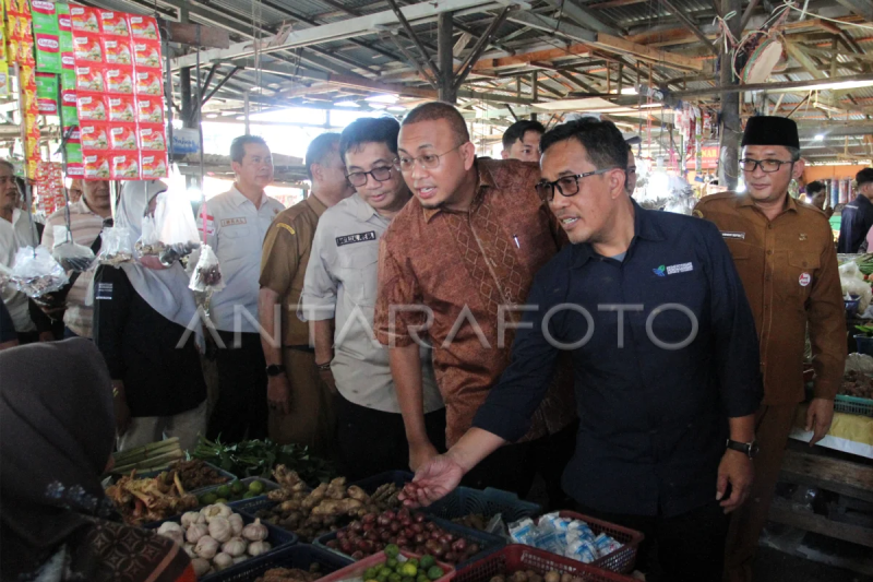 Direktur Jenderal Perdagangan Dalam Negeri Kementerian Perdagangan Isy Karim (kedua kanan) didampingi Anggota DPR Komisi VI Andre Rosiade (ketiga kanan) dan Wali Kota Padang Hendri Septa (kanan) berbincang dengan pedagang saat meninjau Pasar Ulak Karang tipe A, Padang, Sumatera Barat, Selasa (25/7/2023). Kementerian Perdagangan menyerahkan alokasi dana tugas bantuan sebesar Rp3 miliar untuk revitalisasi Pasar tradisional Ulak Karang. ANTARA FOTO/Muhammad Arif Pribadi/tom.